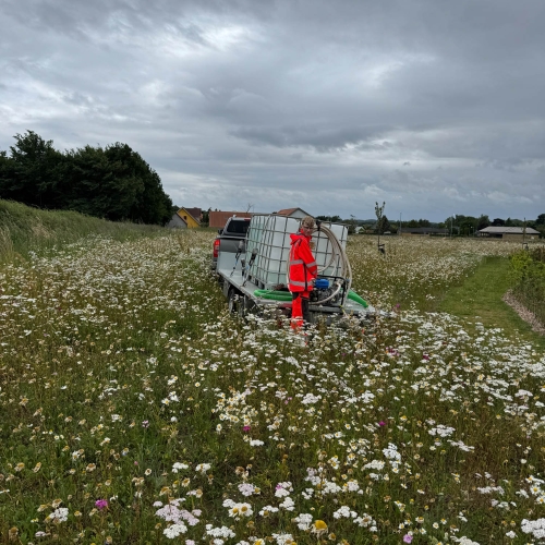 For erhvervskunder og større arealer tilbyder vi effektiv vanding og etableringspleje, der sikrer høj overlevelsesprocent og sund vækst – særligt vigtigt i de første sæsoner efter plantning.